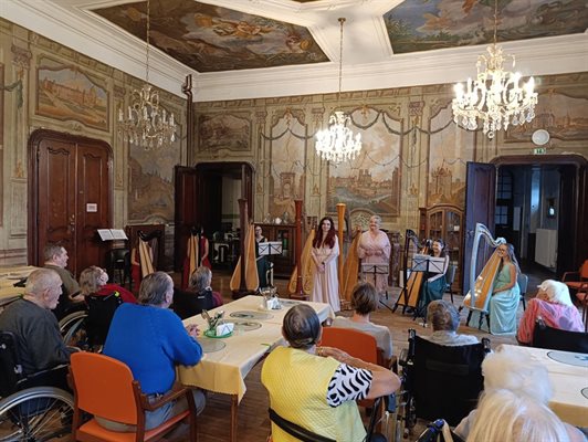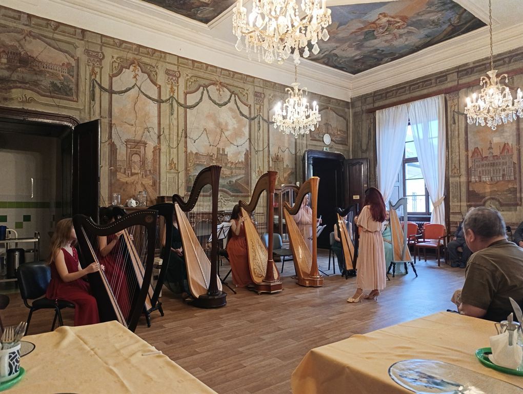 Zazněly historické lidové písně, skladby od Mozarta i Bacha a nechyběl ani legendární harfový úryvek ze Smetanova Vyšehradu.